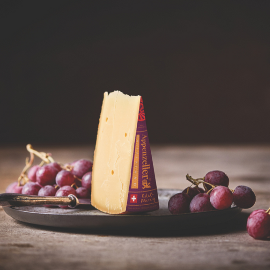 Im Schweizer Kanton Appenzell entwickeln sich die Käselaibe mit liebevoller Pflege und einer Reifezeit von mindestens 9 Monaten zu einem echten Appenzeller mit feinen Reifekristallen und einem einzigartigen Aroma. Ausgewogen, pikant und trotzdem cremig und rund. Genießen Sie den Appenzeller gemütlich mit einem Cabernet Sauvignon. Der Rotwein macht den Käse sehr cremig und rund auf der Zunge.