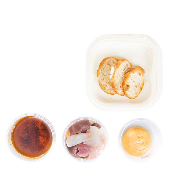 Die Bouillabaisse vereint die Aromen des Meeres mit einem würzigen Sud aus edlem Fisch und mediterranen Kräutern. Serviert wird sie mit einer cremigen Sauce Rouille, die durch ihre feine Würze besticht, und knusprig geröstetem Weißbrot als perfekte Beilage. Diese Vorspeise wird servierfertig geliefert und garantiert einen eleganten Auftakt für Ihr festliches Silvestermenü.