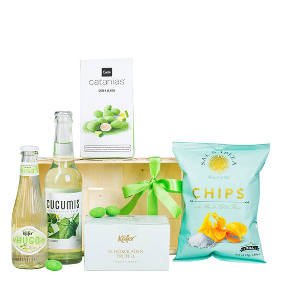 Wenn die ersten Sonnenstrahlen locken, sorgt „Frühlingslaune“ für genussvolle Augenblicke. Dieses liebevoll zusammengestellte Präsent kombiniert prickelnde Leichtigkeit mit feinen Süß- und Salznoten – harmonisch abgestimmt und dekorativ im naturbelassenen Spankorb arrangiert.