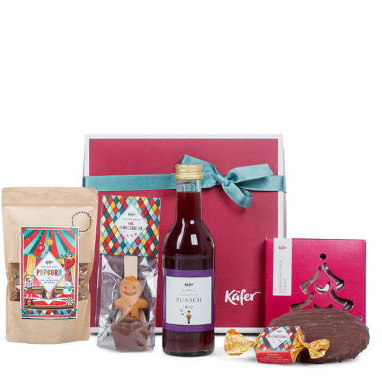 Stilvoll arrangiert in einem roten Käfer Karton.