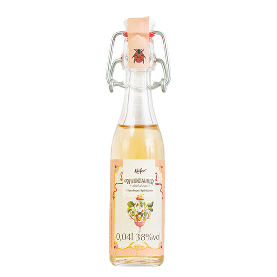 Ein Schnaps mit Charakter und Heimatgefühl: Diese kleine, aber feine Spezialität bringt das unverwechselbare Aroma gerösteter Haselnüsse in seiner klaren und reinen Form ins Glas. Hergestellt mit höchstem Anspruch an Qualität und Destillationskunst entfaltet sich am Gaumen ein intensives, nussiges Geschmackserlebnis mit harmonisch eingebundener Kraft und angenehmem Nachhall. Der Käfer Wiesn Haselnussschnaps kommt in der charmanten 0,04 l-Bügelverschlussflasche, die mit dem liebevoll gestalteten diesjährigen Käfer Wiesn-Logo gestaltet ist. Ob als „Kurzer” auf der Party, als Platzgruß beim Oktoberfest-Menü oder als Mitbringsel mit Augenzwinkern: Diese Miniatur bringt Stimmung mit Stil.