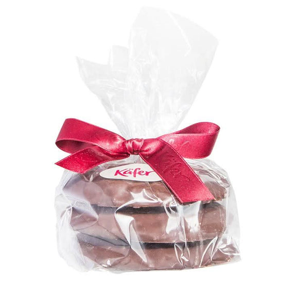 Seit Generationen werden in die Käfer Elisenlebkuchen nach einem bewährten Familienrezept von 1928 gefertigt. Mit viel Liebe zum Detail und in sorgfältiger Handarbeit entstehen so kleine Meisterwerke der Weihnachtsbäckerei. Hochwertige Zutaten wie erlesene Nüsse, Mandeln und aromatische Gewürze bilden die Grundlage des saftigen Teigs, der durch die lange Tradition und das handwerkliche Können seine unverwechselbare Qualität erhält. Der Überzug aus feiner Zartbitterschokolade verleiht den Lebkuchen eine elegante Note und schafft die perfekte Balance zwischen würzigem Kern und edler Schokoladenhülle. Jeder Lebkuchen ist ein Unikat, das mit Hingabe gebacken, veredelt und verpackt wird. Ob als festlicher Genussmoment zur Adventszeit, als Geschenk für Familie und Freunde oder als stilvolle Aufmerksamkeit – diese Lebkuchen verbinden authentische Tradition mit purer Gaumenfreude.