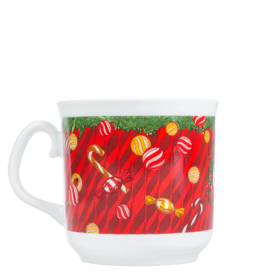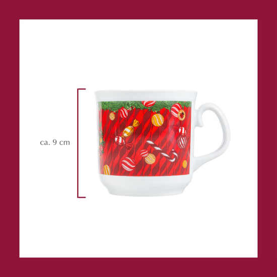 Genießen Sie die Weihnachtszeit mit Stil: Unser diesjähriges Weihnachts-Haferl „Merry Christmas“ ist liebevoll und festlich gestaltet und zeigt einen klassischen Weihnachtskranz mit Kugeln, Zuckerstangen und Süßigkeiten. Perfekt für gemütliche Momente - und ein wunderbares Geschenk für alle, die das Besondere lieben! Ein festliches Accessoire, das die weihnachtliche Stimmung perfekt einfängt und jeden Moment der Adventszeit verschönert.