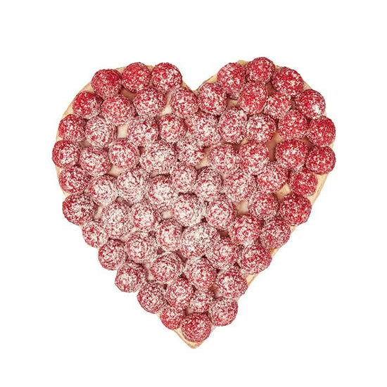 Ein Meisterstück unserer Käfer Konditoren! Die Himbeertarte besteht aus einem luftigen Mürbeteigboden, der mit einer dünnen Schicht weißer Kuvertüre überzogen ist. Nur so kann verhindert werden, dass der Tortenboden durchweicht. Anschließend wird die Tarte mit einer süßen Cremeschicht mit Vanillearoma bestrichen und mit den schönsten Himbeeren der Stadt belegt. Und das schon um 4 Uhr morgens, damit es nicht nur in unserem Stammhaus, sondern auch in unseren Delis immer frische Himbeertartes gibt. Das i-Tüpfelchen zum Schluss ist ein spezieller Puderzucker zum Bestäuben, denn nur er behält lange seine weiße Farbe. In der liebevollen Herzform ein ganz besonderes Valentinstags-Geschenk für auserwählte Lieblingsmenschen.