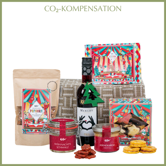 „Käfer Magie“ ist ein stimmungsvoll arrangiertes Weihnachtspräsent, das mit Kontrasten spielt: Süße Knuspergebäcke treffen auf herzhafte Klassiker, ergänzt durch einen feinen Rotwein und dekorative Elemente. Es ist die perfekte vielseitige Geschenkidee für Kunden, Kollegen oder andere Genießer.