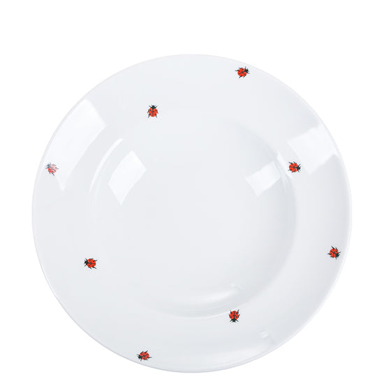 Dieser Pastateller bringt die Käfer-Ästhetik auf den Punkt: klassisch, charmant und vielseitig einsetzbar. Das Streumuster mit dem ikonischen Käfern zieht sich dezent über den Tellerrand und verleiht dem Teller eine unverwechselbare, elegante Note. Mit einem Durchmesser von 30 cm eignet er sich perfekt für Pasta-Gerichte, aber auch für festlich angerichtete Hauptspeisen, Vorspeisenplatten oder Salate. Seine großzügige Form sorgt dafür, dass Gerichte stilvoll präsentiert werden und gleichzeitig ausreichend Raum für kreative Arrangements bleibt. Gefertigt aus hochwertigem Porzellan überzeugt der Teller durch Beständigkeit und hochwertige Verarbeitung – er ist somit ideal für den täglichen Gebrauch und für besondere Anlässe. Ob als Einzelstück, Teil einer stilvollen Tafel oder als Geschenk: Dieser Teller ist Ausdruck von Genusskultur und Liebe zum Detail.