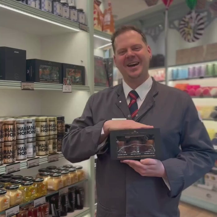 Das „Premium Manuka Honey Experience Set” von Anuk entführt in die faszinierende Welt des neuseeländischen Manuka-Honigs. In den unberührten Landschaften Neuseelands geerntet, wird jeder Tropfen dieses goldenen Nektars mit größter Sorgfalt und Hingabe gewonnen. Das Set umfasst drei unterschiedliche MGO-Stufen – 550+, 700+ und 850+ – und bietet damit ein einzigartiges Geschmackserlebnis, das die Vielfalt und Tiefe des Manuka-Honigs eindrucksvoll zeigt. Dank des edlen, minimalistischen Designs steht das Set für pure Qualität, Natürlichkeit und Handwerkskunst. Jede Variante offenbart ihre eigene Charakteristik – von fein-blumig bis intensiv-aromatisch – und lädt dazu ein, die Unterschiede bewusst zu erleben. Ob als Geschenk, zur Verkostung oder als luxuriöses Sammlerstück: Dieses Set verkörpert den Anspruch von Anuk, aus einem Naturprodukt ein Erlebnis voller Eleganz und Authentizität zu schaffen.
