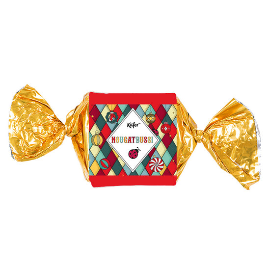 Tauchen Sie ein in die festliche Weihnachtsstimmung und gönnen Sie sich das unvergleichliche Geschmackserlebnis des Käfer Nougat Bussi mit unserm diesjährigen Weihnachtsmotiv der Lebkuchenstadt. Feinstes Nougat, verfeinert mit gehackten Haselnüssen, wird von einer zarten Vollmilchschokolade ohne Alkohol umhüllt. Lassen Sie sich von der perfekten Kombination aus Nougat und Schokolade verzaubern und spüren Sie die Liebe zum Detail, die in jedem handgefertigten Käfer Nougat Bussi steckt.